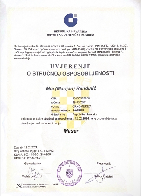 Uslugu pruža Mia Rendulić, vlasnica studija, certificirana maserka s petogodišnjim iskustvom. Svaki tretman je individualan, profesionalan i prilagođen potrebama i željama vaših zaposlenika.